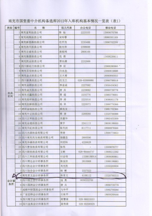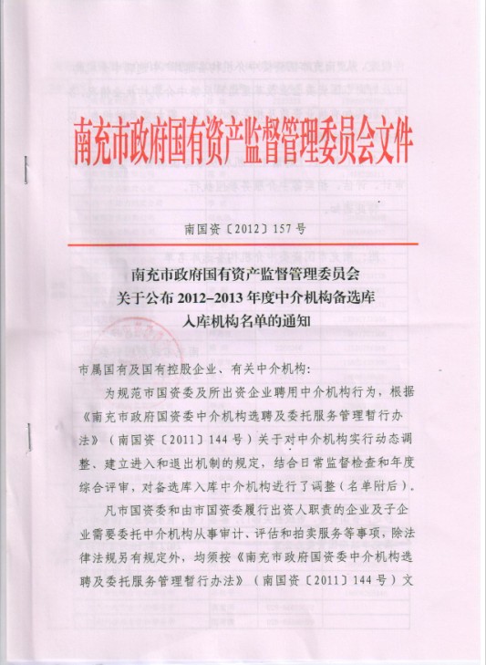 我所入围南充市国资委2012~2013年度中介机构备选库