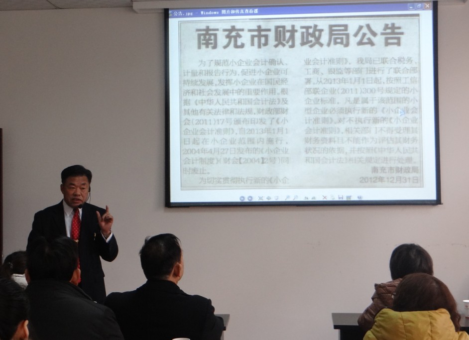 本次培训由南充首义会计师事务所所长、中国注册会计师、高级会计师陈守义主讲。主要内容包括:目前我国企业会计制度体系;小企业划分标准;《小企业会计准则》执行的范围及要求;《小企业会计准则》有哪些变化;执行《小企业会计准则》新旧制度的衔接方法等等。陈所长授课过程中宣读了财政部的有关文件和南充市财政局关于《执行小企业会计准则的公告》,充分肯定了《小企业会计准则》在企业防范风险,降低经营成本,提高经济效益等方面的积极作用。同时,陈所长紧密结合小企业的实际情况,通过深入浅出的案例宣讲,对大家普遍关心的疑难问题进行了生动诠释。课后,我们还免费为客户提供了讲稿及其他相关资料。