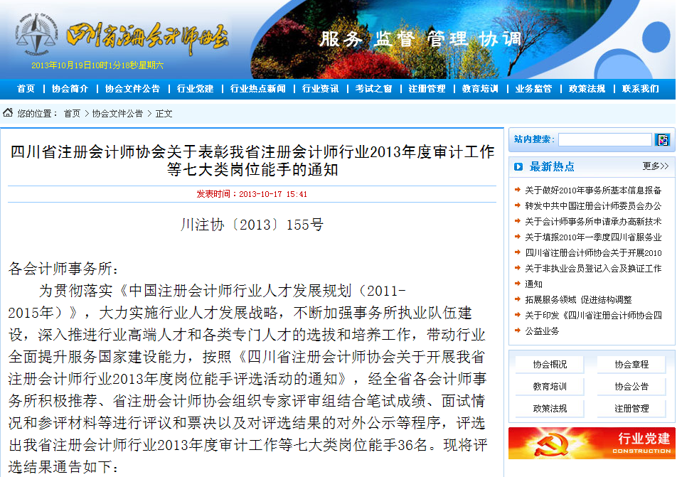 热烈祝贺我所办公室主任兼人力资源部经理沈艳被评为“四川省注册会计师行业2013年度人力资源岗位能手”
