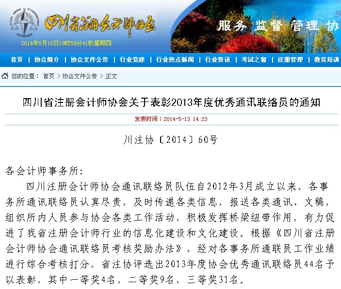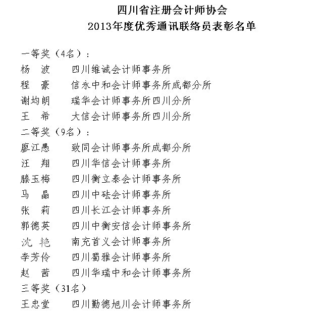 热烈祝贺我所办公室主任沈艳同志荣获四川省注册会计师协会2013年度优秀通讯联络员二等奖