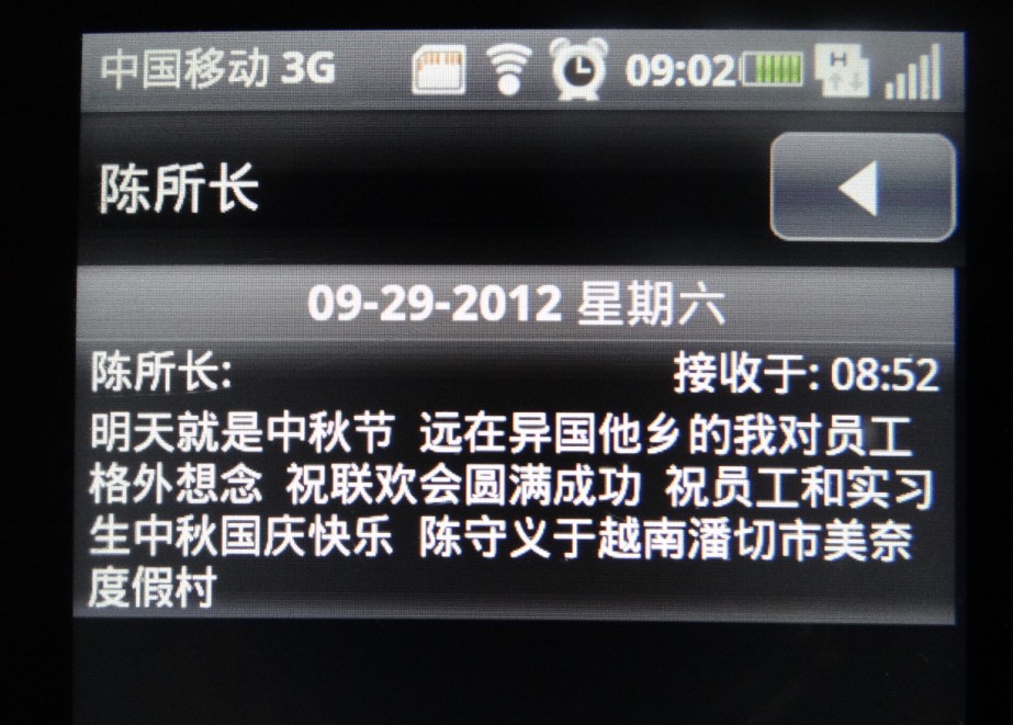 联欢会由常务副所长陈南军同志致祝词,并报告了我所2012年再次跻身四川省会计师事务所前百强的喜讯,还宣读了所长陈守义从越南发回的中秋、国庆祝福短信。