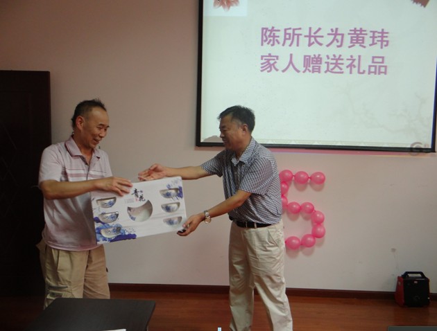 紧接着,所长陈守义为黄玮同志颁发了荣誉证书、奖金,工会主席李璨为她佩戴了大红花。为了感谢黄玮的家人这些年来对她工作和生活的关心、支持,我所给家人赠送了礼物。