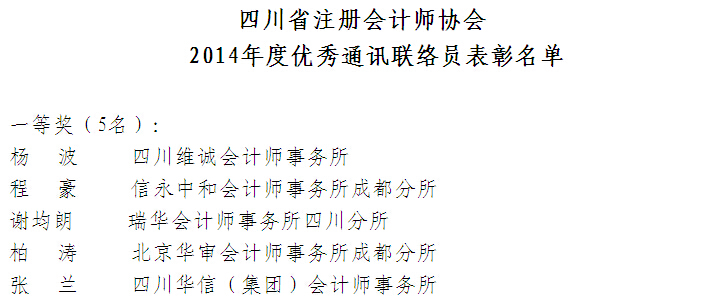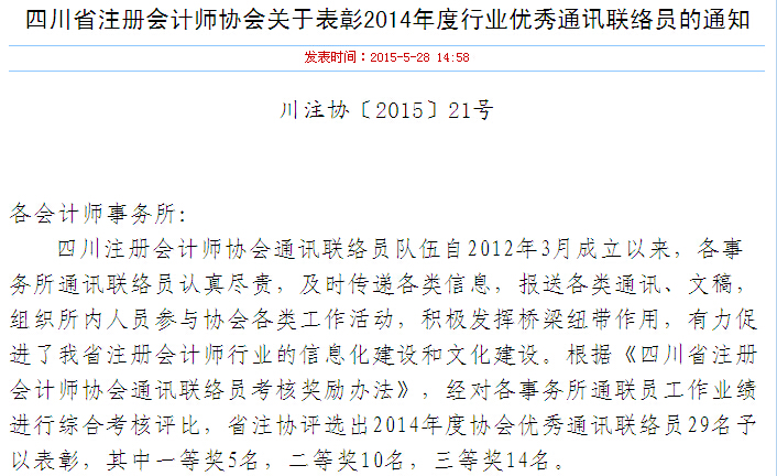 热烈祝贺我所办公室主任沈艳同志荣获四川省注册会计师协会2014年度优秀通讯联