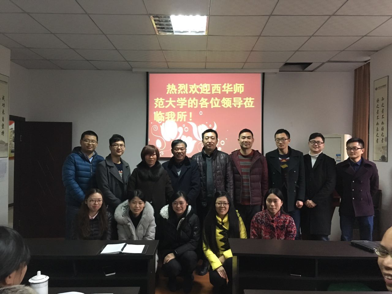 毕业于西华师范大学的员工与母校老师合影留恋