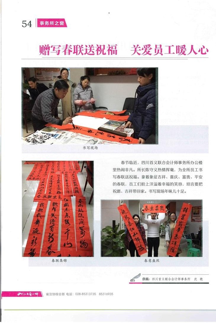 热烈祝贺我所办公室主任沈艳撰写的《赠写春联送祝福 关爱员工暖人心》文章在省注协杂志发表