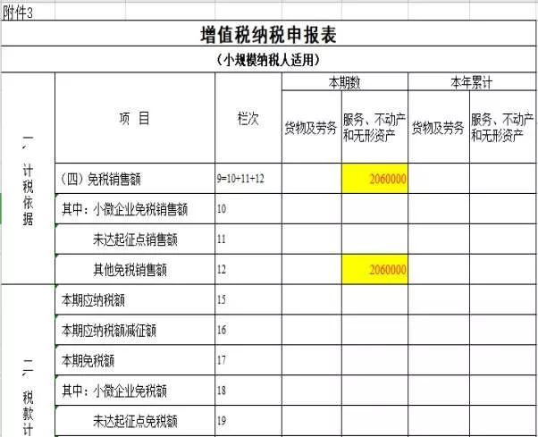 提醒:增值税小规模纳税人应在当期《增值税纳税申报表(小规模纳税人适用)》第12栏“其他免税销售额”相关列次,填报免税销售额,并在《增值税减免税申报明细表》中选择正确的免税代码,填写相关列次。