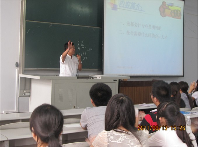 在长达三个多小时的讲座中,陈所长通过浅显的比喻,生动的实例,有趣的故事,独到的视角以及渊博的知识深深地吸引了大家。同学们普遍反映:这次讲座让自己受益匪浅,坚定了选择会计专业的决心。作为一个刚刚进大学的会计专业学生,陈所长的讲座无疑是一颗定心丸,安抚了我们摇摆不定的心,让我们对会计工作充满希望、充满热情,同时明确了努力方向。
